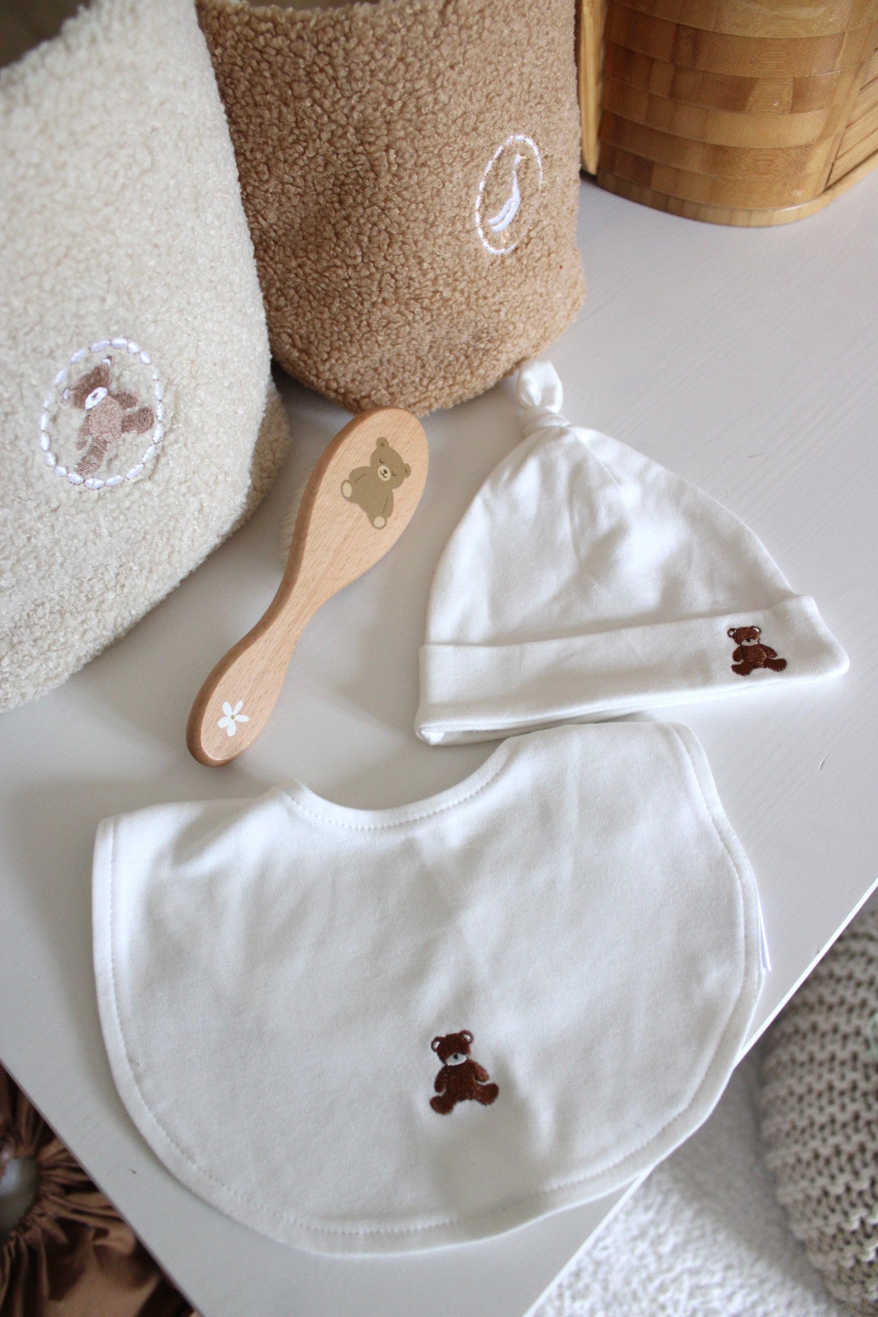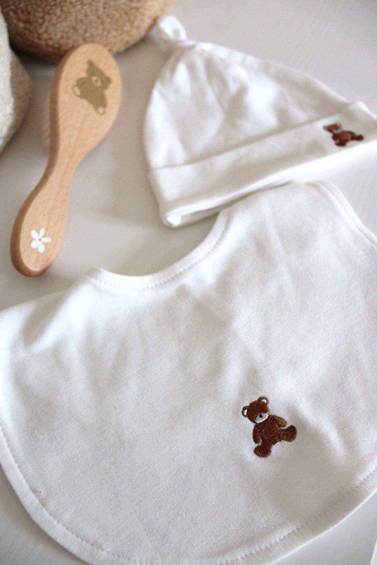 Realizzato in cotone organico, è delicato sulla pelle del neonato e arricchito dal ricamo dell’orso Lou, simbolo di cura, tenerezza e semplicità.