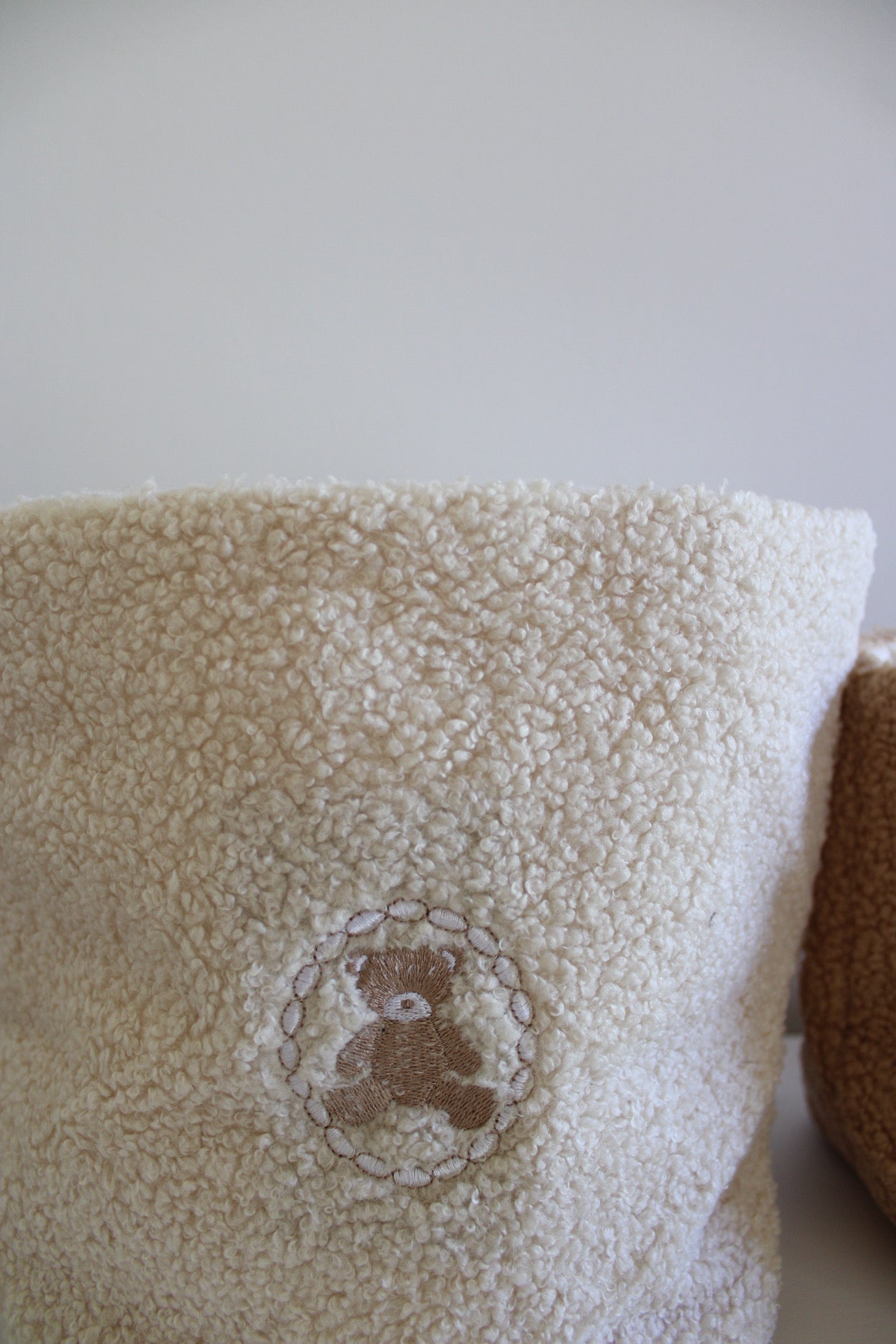 Realizzato in morbido tessuto teddy color beige, con interno impermeabile, unisce praticità e dolcezza in ogni dettaglio.